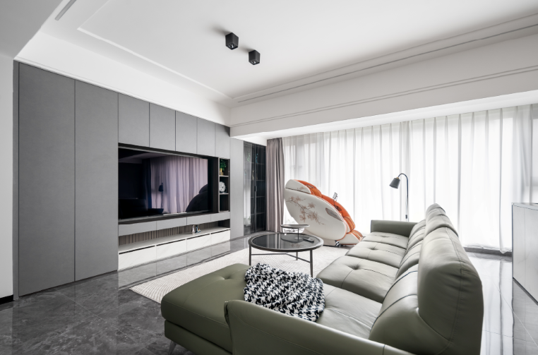 如果预算充足,也可以选择大理石电视墙或储物柜电视墙,设计元素保持简洁,既高级又实用。