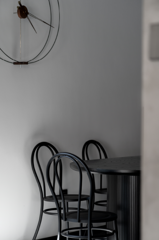 例如复古实木餐桌、金属挂钟、编织杯垫、羊绒地毯等装饰元素,造型简洁又富有质感,在空间中往往能起到画龙点睛的作用。