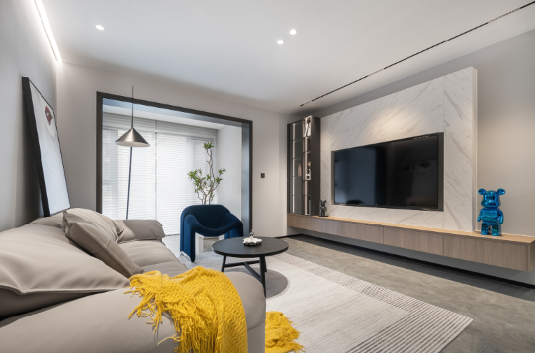 如果预算充足,也可以选择大理石电视墙或储物柜电视墙,设计元素保持简洁,既高级又实用。